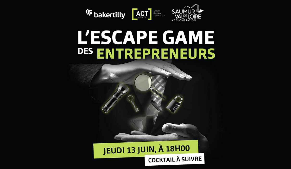 A travers sa marque ACT dédiée à l’accompagnement des créateurs/repreneurs d’entreprise, le cabinet de conseil et d’expertise comptable Baker Tilly, organise, pour la première fois à Saumur, un escape game des entrepreneurs le 13 juin prochain à 18 heures, dans les locaux de la Communauté d’Agglomération de Saumur Val de Loire qui ouvre exceptionnellement ses portes pour l'occasion ! Destiné aux dirigeants et créateurs, cet évènement est gratuit.